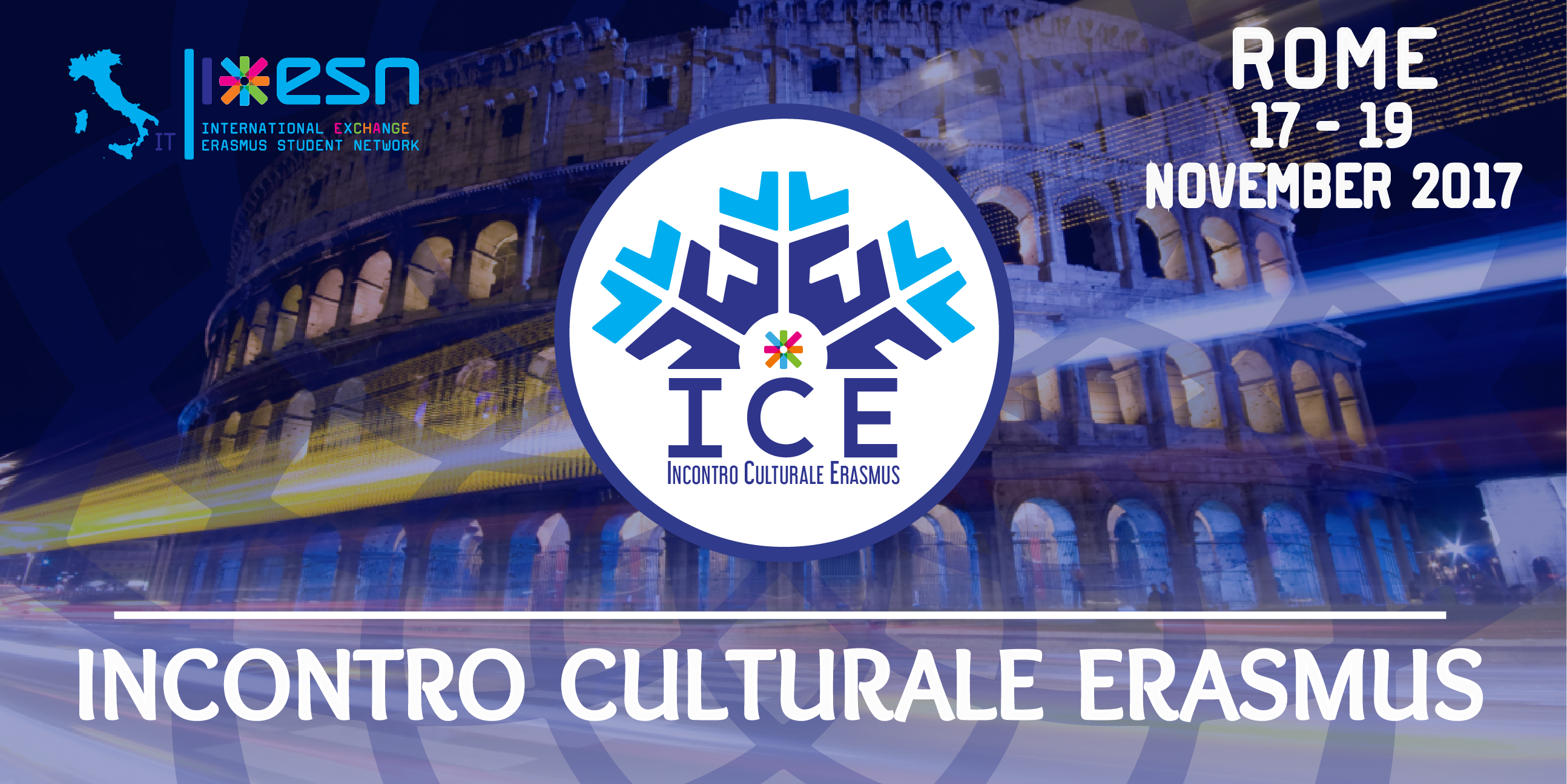 Ciao ragazzi, il momento più atteso dell'inverno è arrivato. Vi presentiamo ICE ROMA 2017. L'ICE è l'Evento Nazionale Invernale di ESN Italia. 3000 Erasmus e 52 sezioni ESN invadono Roma. Saranno 3 giorni immersi nella stupenda capitale d'Italia tra arte e divertimento. Il viaggio sarà dal 17 - 19 novembre e in contributo da versare è di 110€.