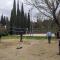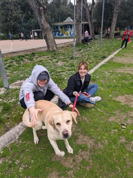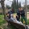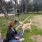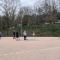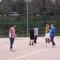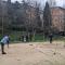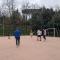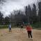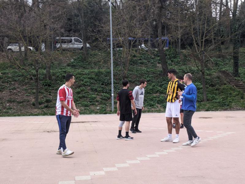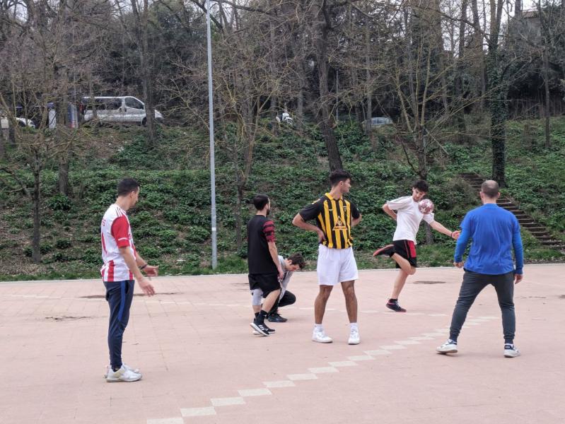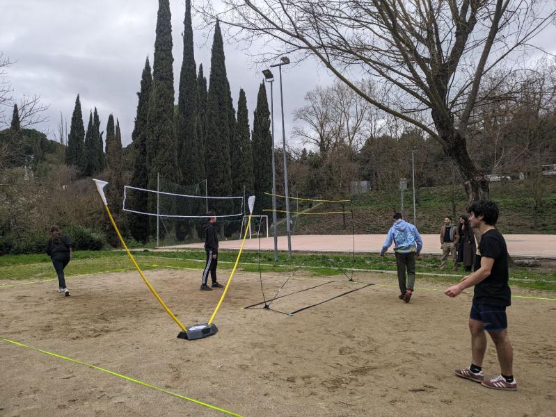Sports day to vent stress in a healthy way, playing football, volleyball and relaxing on a bench in the cool.