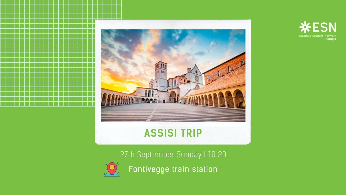 Vi abbiamo fatto stancare abbastanza con la nostra welcome week?? allora ecco l'evento che fa per voi! Venite a visitare Assisi con noi e conoscere le varie curiosità della città di San Francesco. La data del viaggio è di domenica 27 settembre. La partenza è prevista dalla stazione di Fontivegge alle 10 e 13, ci sarà la visita guidata con una breve pausa con pranzo a sacco e poi di nuovo in marcia. Il ritorno è previsto per le 19 e 13.