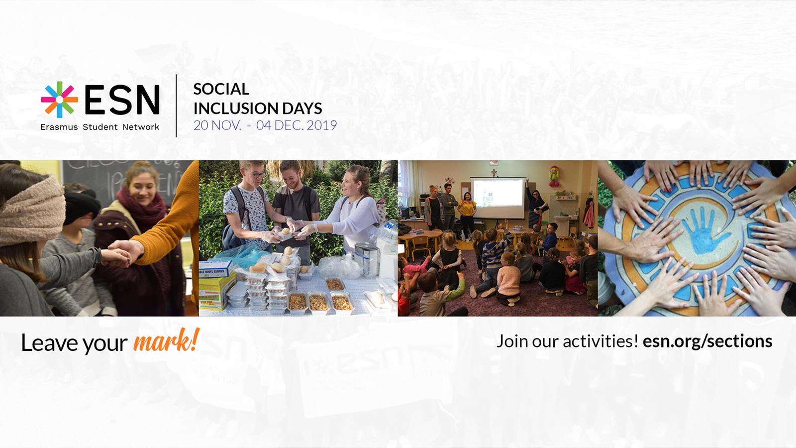 Tra il 20 Novembre e il 4 Dicembre 2019 si svolgeranno in tutto il Network di ESN i Social Inclusion Days.